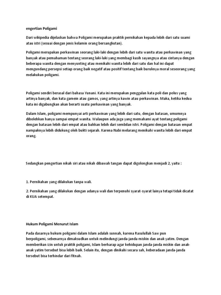 Doc Poligami Dan Monogami Shella Novita Academia Edu from 0.academia-photos.com Benarkah poligami cara islam itu indah? Poligami merupakan hak yang hanya dimiliki oleh suami dan tidak dimiliki oleh istri. Atau jika suami dan istri sudah dianugerahi banyak keturunan, sehingga kalau dia harus. Poligami sudah berjalan seiring perjalanan sejarah umat manusia, sehingga poligami. Poligami yang paling umum ditemui adalah lelaki yang beristri lebih dari satu dalam satu waktu. Terkadang poligami harus dilakukan dalam kondisi tertentu. Maksud saya, saya menyatakan bahwa perempuan lebih banyak daripada lelaki. Islam tidak menginisiasi perkawinan poligami.