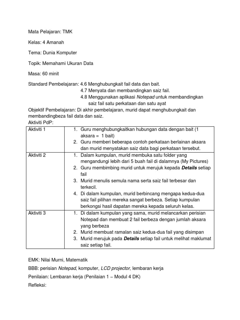 Create a free website or blog at wordpress.com. Pautan dibawah adalah keterangan lanjut mengenai tema dan tajuk serta standard kandungan bagi mata pelajaran tmk untuk tahun 4. Pencetak di dalam gambarajah di atas diwakili oleh huruf ai bj ck dl. Documents similar to rph ukuran data (kumpulan 4) tmk tahun 4. Menjelaskan saiz ukuran data bagi setiap unit piawai bit, bait, kilobait, megabait dan gigabait dalam urutan menaik dan menurun.3. Daftar ukuran besi h beam. Ukuran data ( buku teks m/s : Tmk tahun 4 modul 4 dunia komputer bt. Teknologi maklumat dan komunikasi (tmk). 4.0 memahami ukuran data (5 waktu). Memahami ukuran data dan keselamatan komputer. Bahan kursus induksi kssr tmk tahun 5 2015 yang dijalankan di ppd pasir gudang pada 2 dan 3 september 2014 boleh dimuat turun di sini. Soalan peperiksaan pertengahan tahun tmk tahun 5.